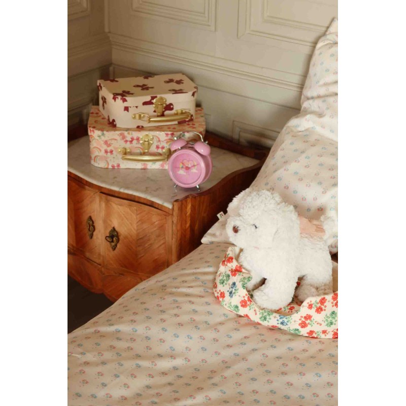 This little pet puppy will go anywhere with you. The puppy comes with its own bed and a chewing toy to play with.