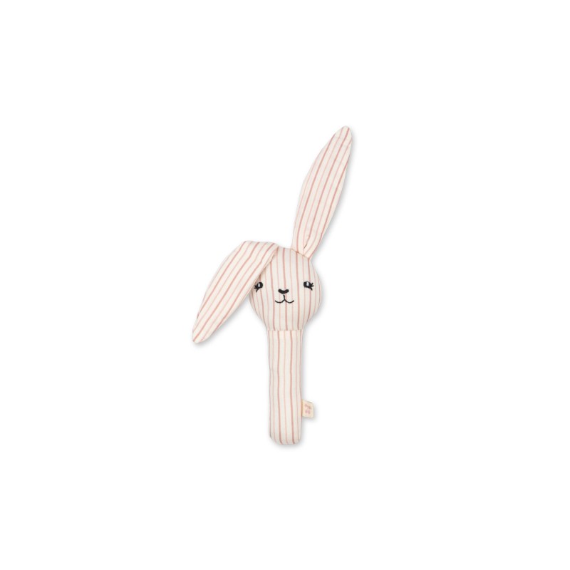 Soft rattle with textured surfaces made in organic cotton. Makes a sound when shaken. Designed in a shape that is easy for babies to grasp and develop their fine motor skills by learning to hold the rattle in one hand then transfer the toy into another hand.