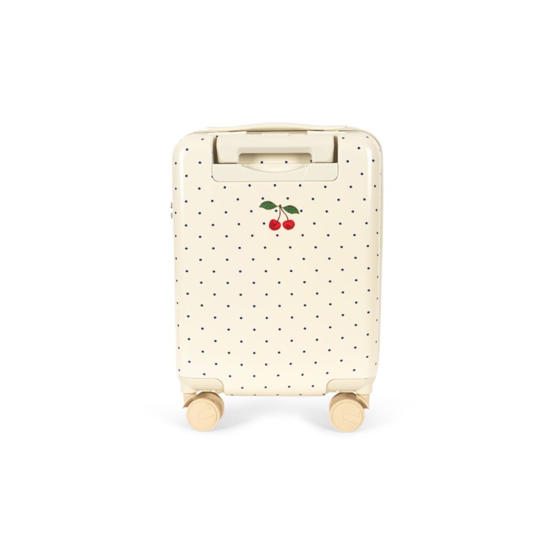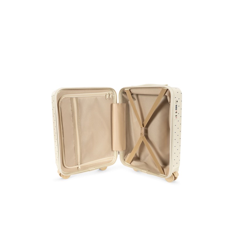 This must-have suitcase from Konges Sløjd has a hard shell, is made with four double spinner wheels and has a TSA LOCK®! There is also a side handle that's really handy when lifting the a heavily packed suitcase. The interior of the suitcase is covered with two layers of fabric with zippers, a small net room with a zipper for small things and a suspender with a buckle to keep things in place.