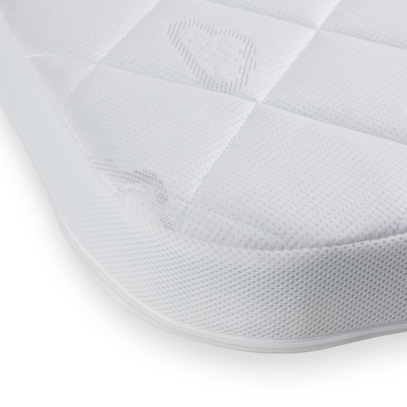 Along the cover's sides is a strip of extra breathable ventilation material, ensuring optimal air circulation. A safety zipper prevents the child from accidentally opening the cover. The cover can be opened with a paperclip when it needs to be washed at 60°C.