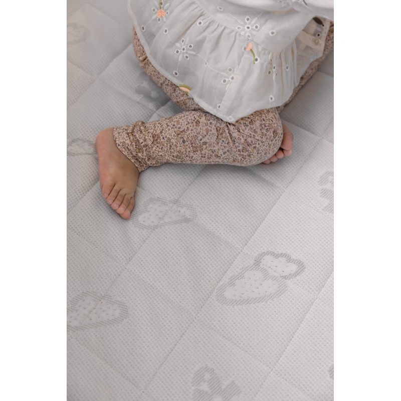 The cover is soft and made from quick-drying polyester and TENCEL™. TENCEL™ consists of natural fibres that absorb moisture, helping regulate humidity while the child sleeps. Combining these two materials ensures a comfortable sleeping environment with an ideal temperature.