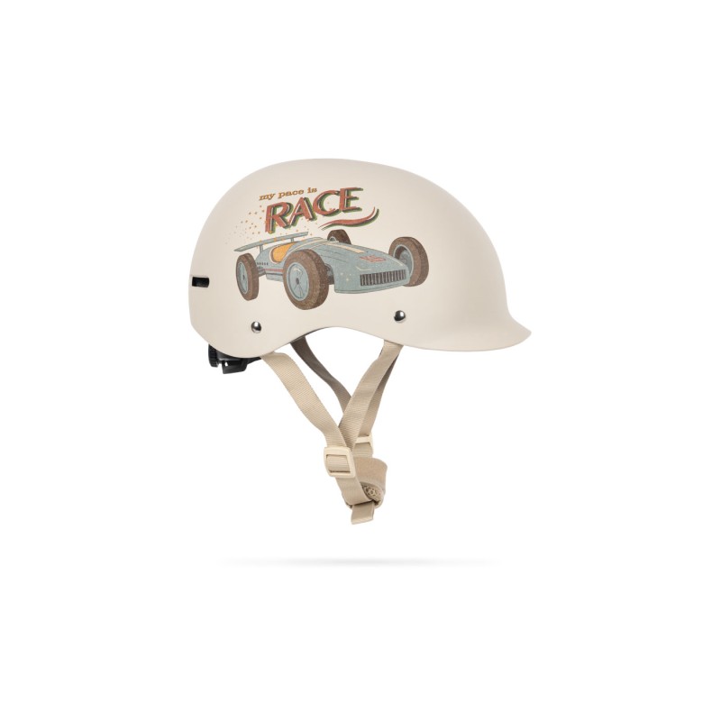 This helmet should not be used by children while climbing or doing other activities where there is a risk of strangulation/hanging if the child gets trapped with the helmet. The protective effect of the helmet can be seriously affected by paint, stickers, cleaning liquids or other solvents. The helmet has to be changed after a fall!