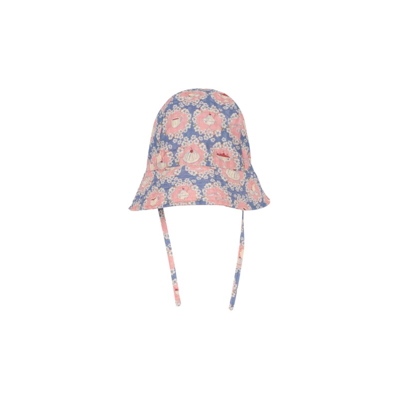 Soft sun hat crafted in 100% organic cotton. Designed with a wide brim and ties to fasten under the chin for a snug fit.