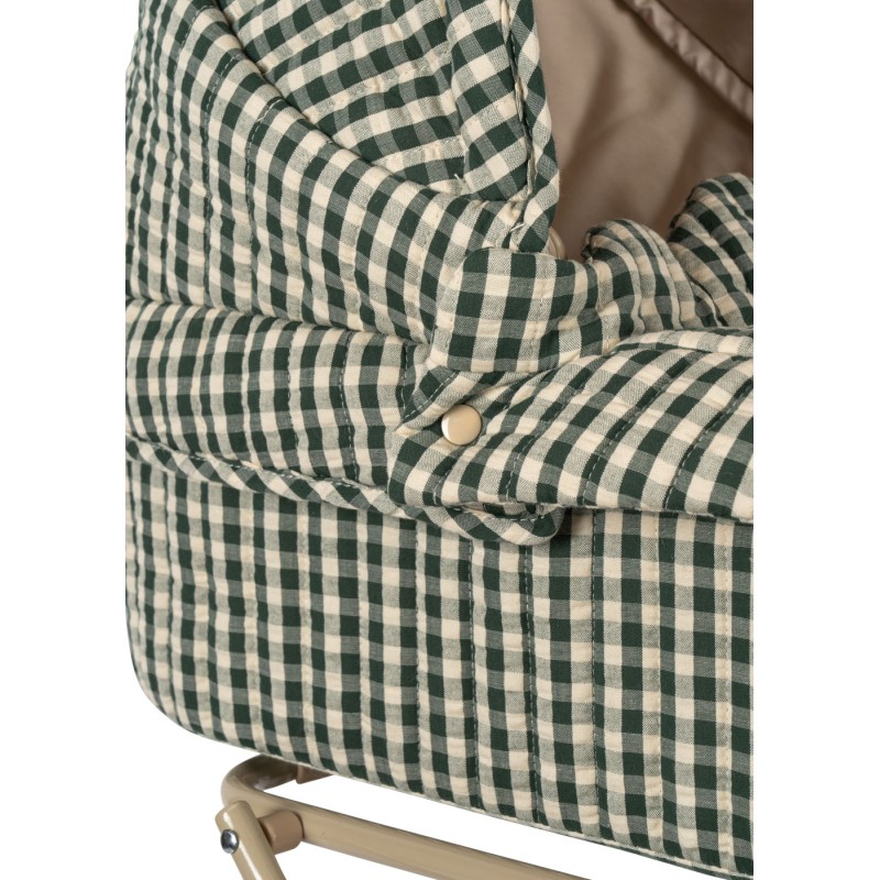 Features printed quilt fabric and a mattress made in cotton. Designed with a softly cushioned storage basket under the lift.