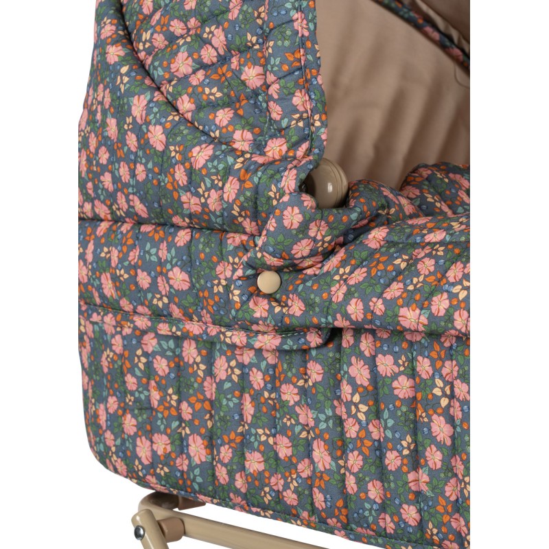 Vintage style doll pram designed with four large wheels made in EVA material for extra stability. Features quilted printed fabric and a mattress made in 100% cotton out of which 50 per cent is recycled cotton. Designed with a softly cushioned storage basket under the lift.