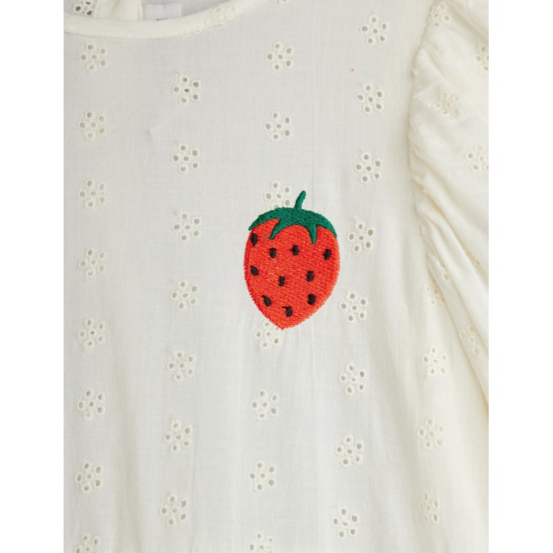 • Embroidered strawberry badge