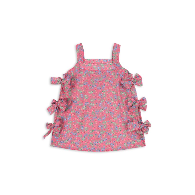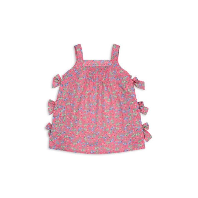 Soft cotton dress with bows along the sides.