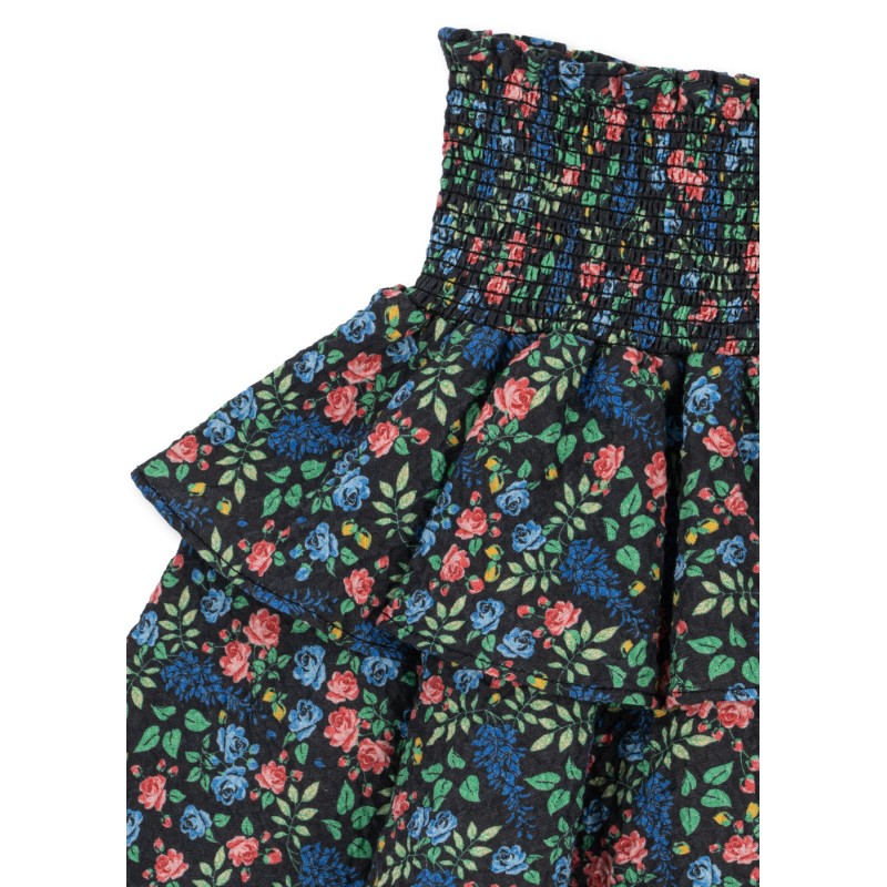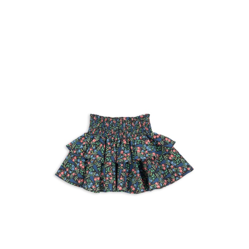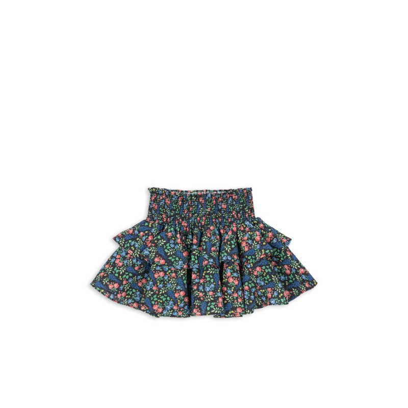 Voluminous layered skirt with a smocked waist.