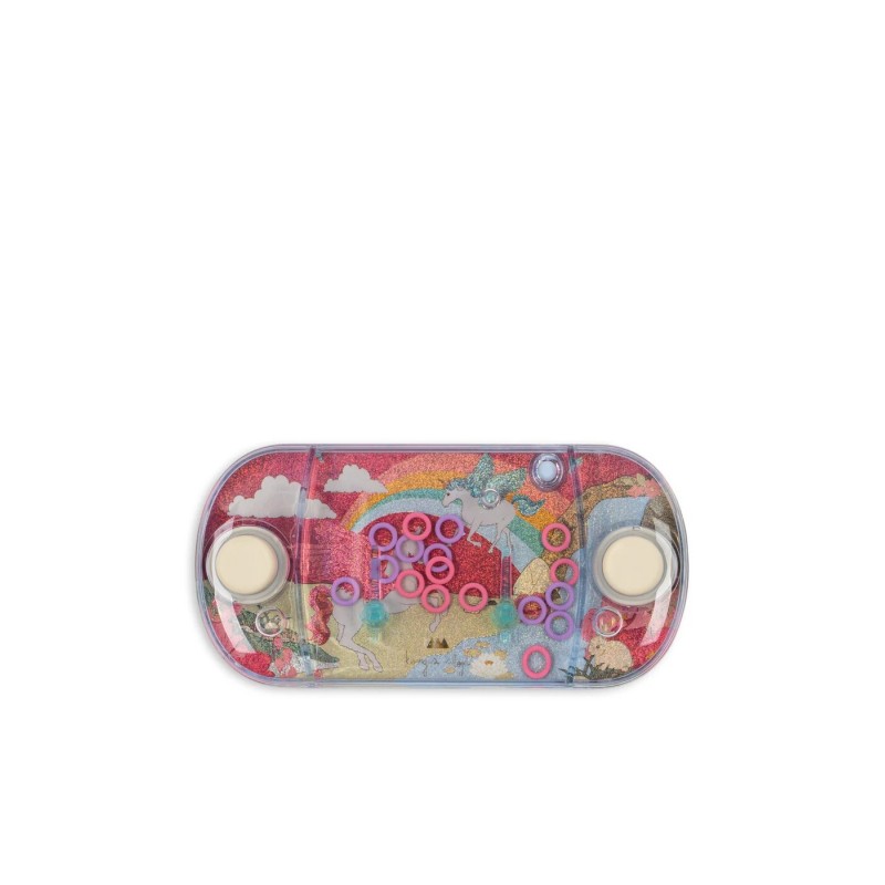 Designed with signature Konges Sløjd backgrounds, this fun water ring game challenges kids to press the buttons and skillfully guide colorful rings onto the floating pegs.