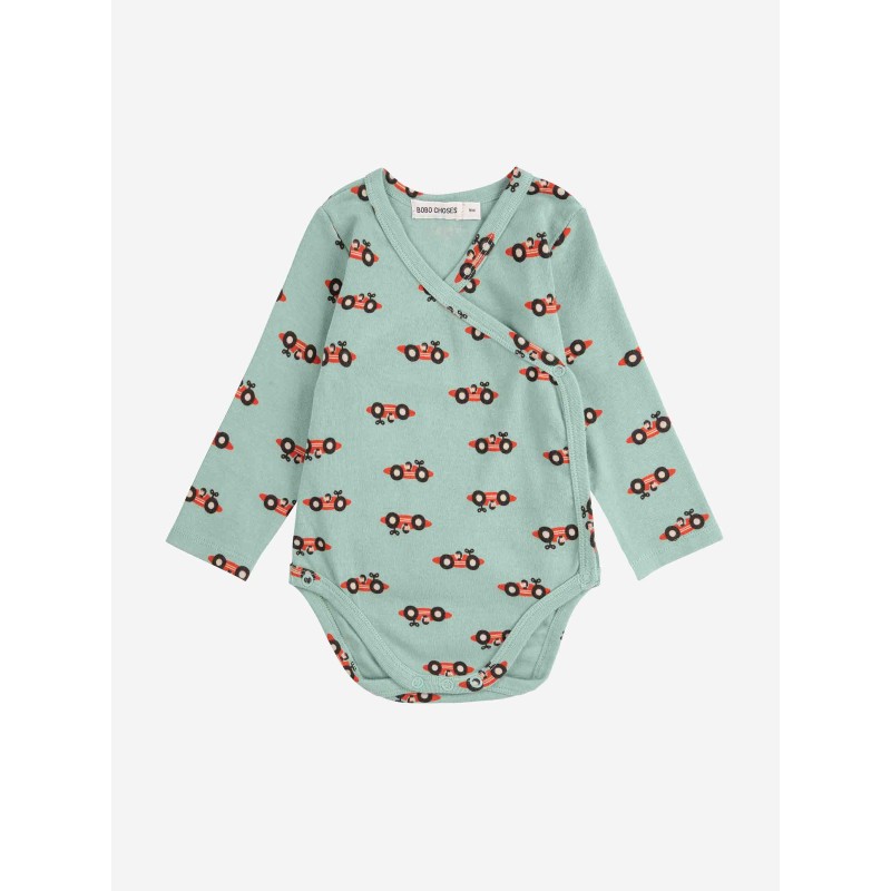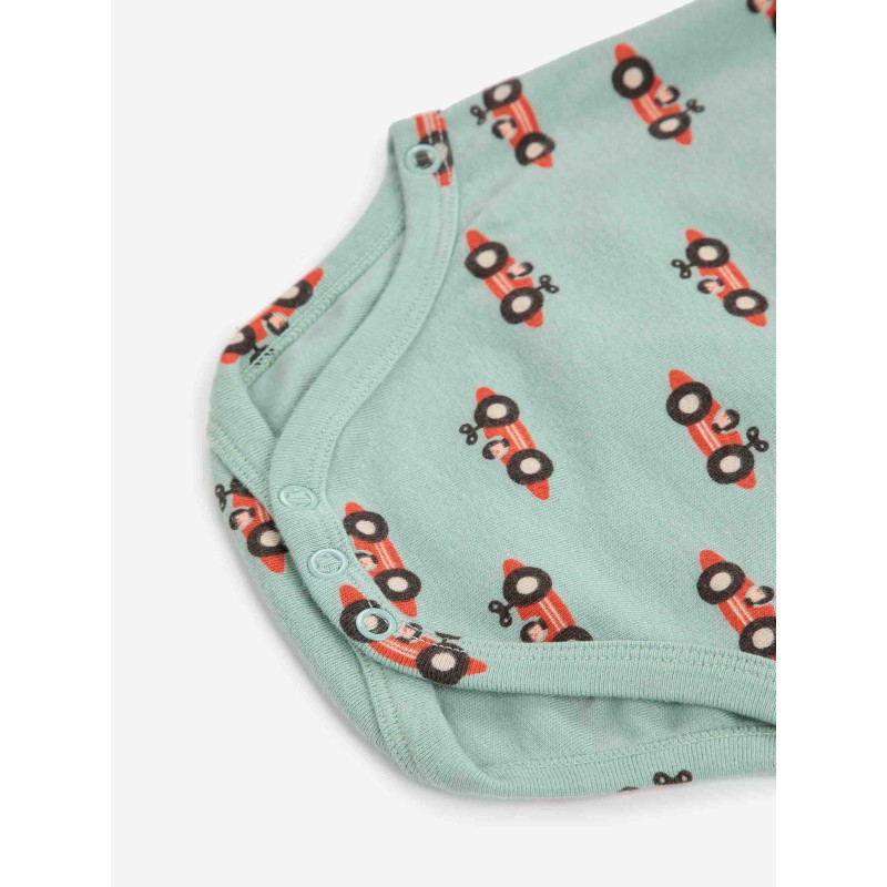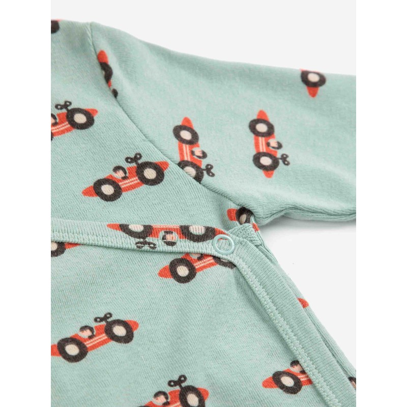 Light green body. Designed with v-neck, long sleeves, raglan sleeves, crotch snap fastening, slim fit, cord fastening and off-centre front button fastening. Made in Spain.