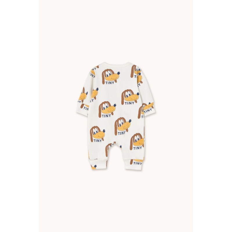 This Dogs allover print rib one-piece is crafted from a soft organic cotton blend, offering a breathable feel. It features a comfortable fit, long sleeves, and snap buttons for easy dressing.