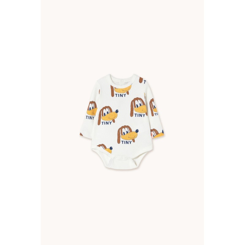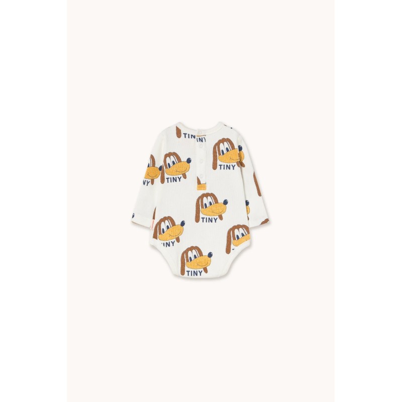 This colorful Dogs printed rib body is crafted from a soft organic cotton blend, offering a breathable feel. It features a comfortable, relaxed silhouette with long sleeves and a snap opening at the bottom.