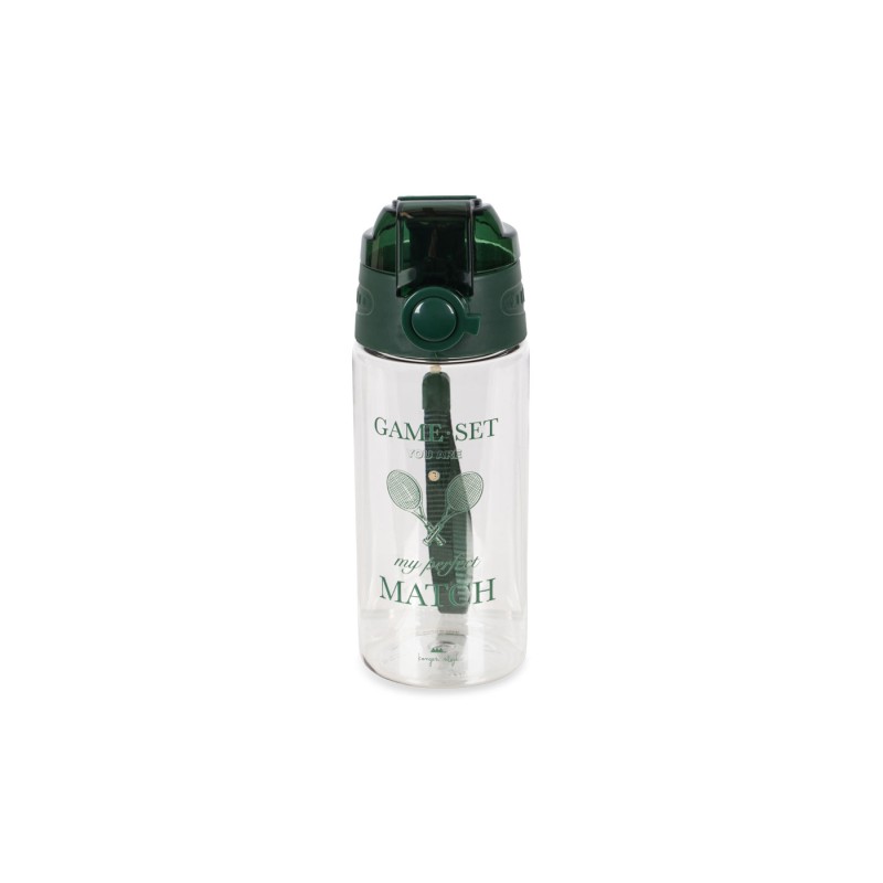 Water bottle with an easy click-up lid. Convenient to bring on the go, it only takes a quick push to pop the bottle open and drink, and the same to snap it shut, keeping it clean and leak-free.