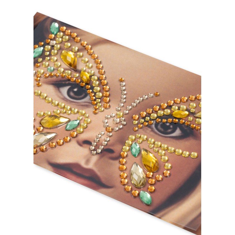 Sheet of decorative face jewels designed to be worn as a face mask. Perfect for little creatives that love playing around with different looks and expressions.