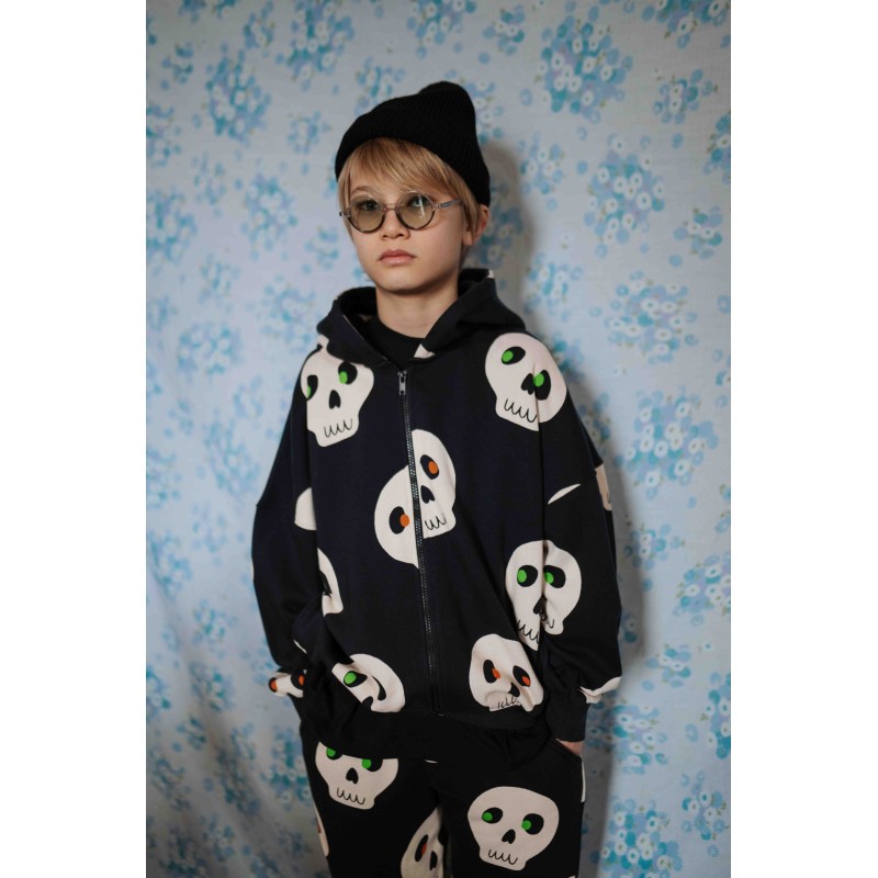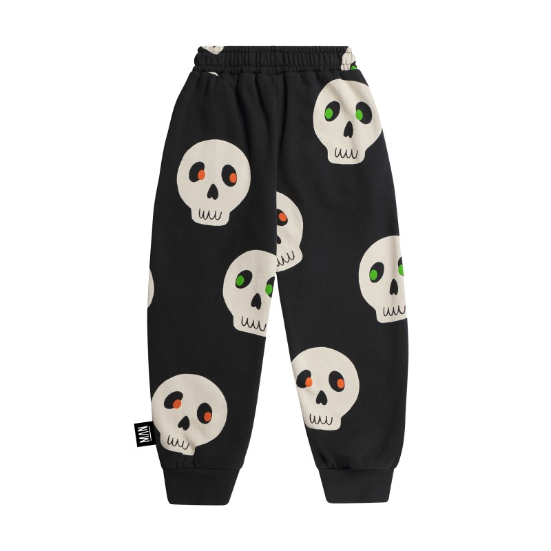 Black unisex kids pants with bold allover skull graphics and neon-accented eyes – a fearless style upgrade for everyday wear. Designed for comfort, attitude, and freedom to move.