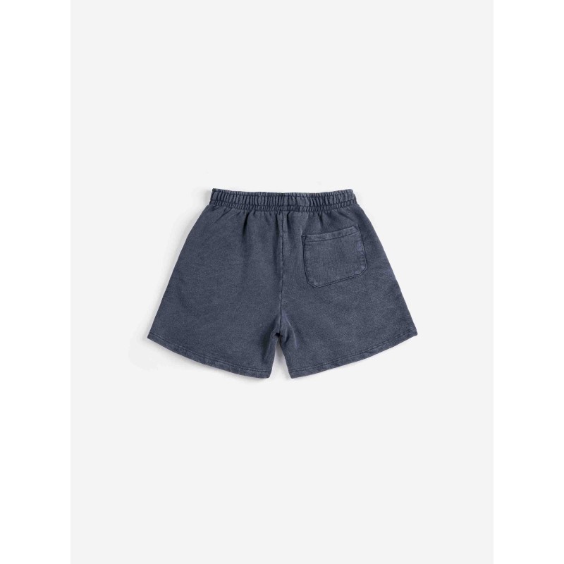 Navy blue shorts. Designed with elasticated waistband, embroidery, adjustable drawstring, over knee length, patch pocket, seam pocket and relaxed fit. Made in Spain.
