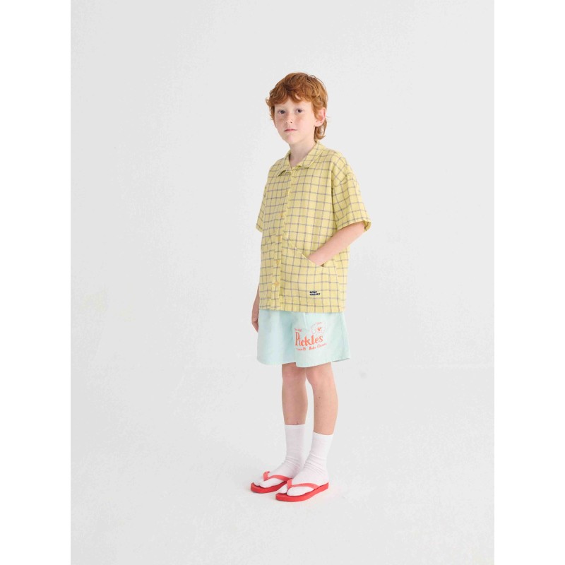 Light blue shorts. Designed with elasticated waistband, over knee length and seam pocket. Made in Spain.