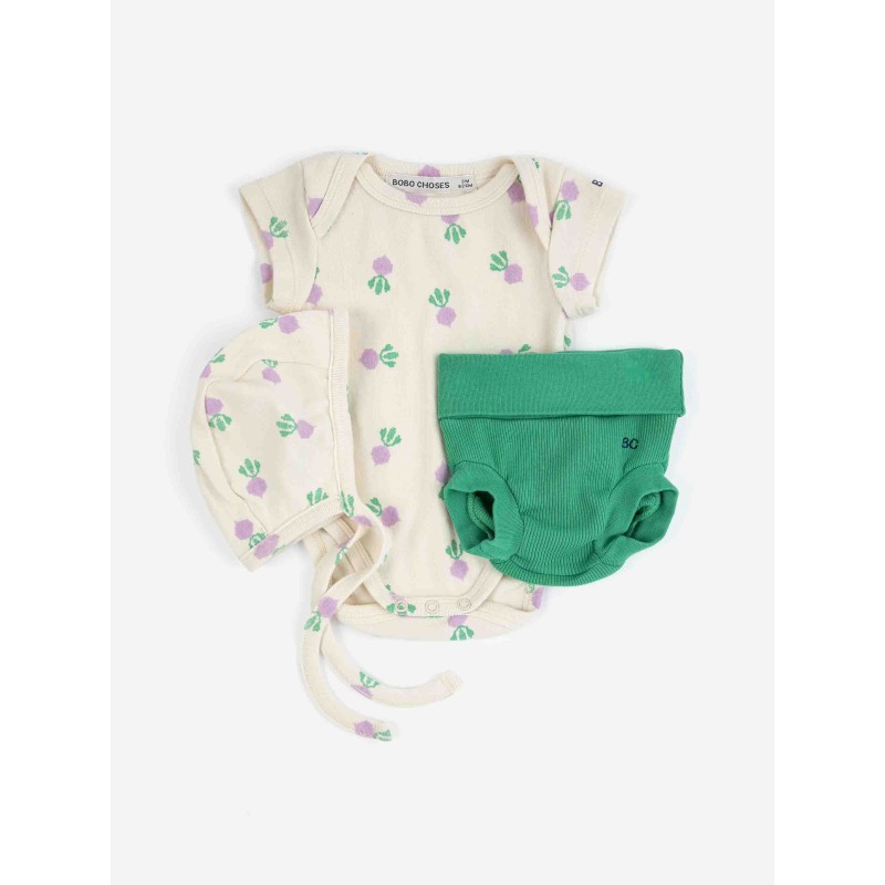 Green pack. Designed with short sleeves, crotch snap fastening, elasticated waistband, embroidery, slim fit and envelope neck. Made in Spain.