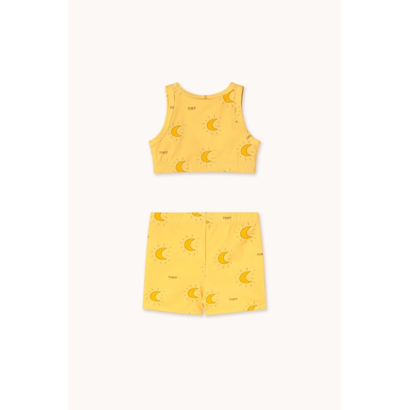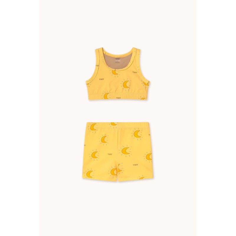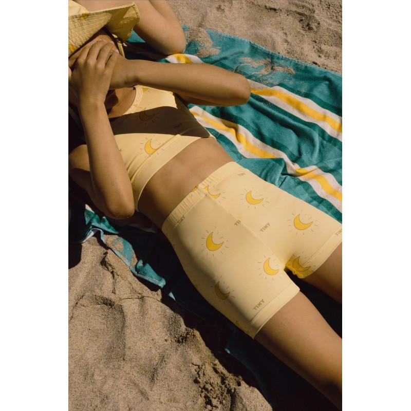 Welcome to a place where the Sun never sets. The Midnight Sun Swim set will be your ideal companion for the warmest days. Go from the park to the beach, from the city to the pool, and never lose your style. It comes in two pieces: a cropped top with wide straps and shorts, featuring one of our coolest prints.