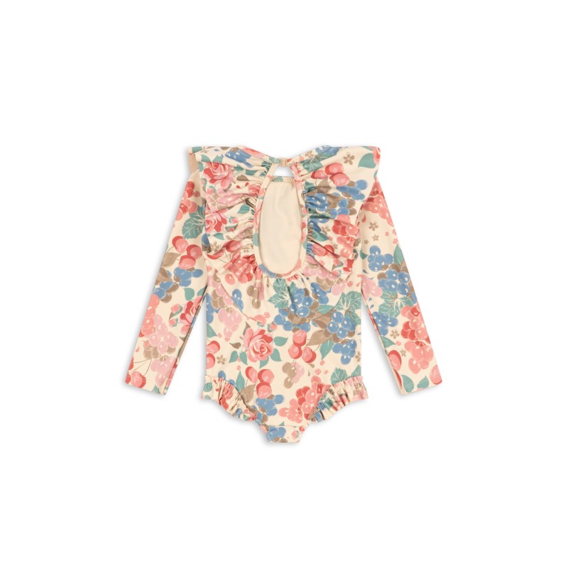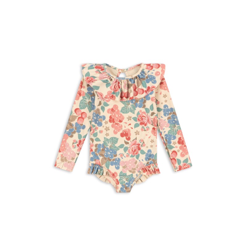 Long-sleeved swim blouse designed with shoulder frills. Made in a quick-drying, stretchy material that feels lightweight and comfortable to wear.