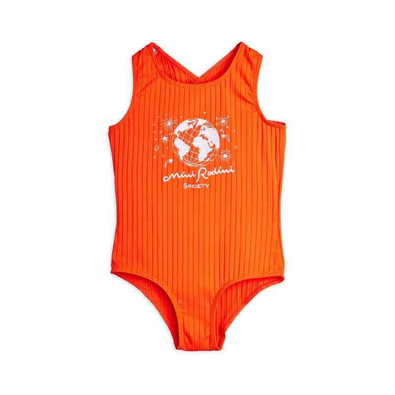 One-piece swimsuit with embroidered Society motif in recycled stretch fabric