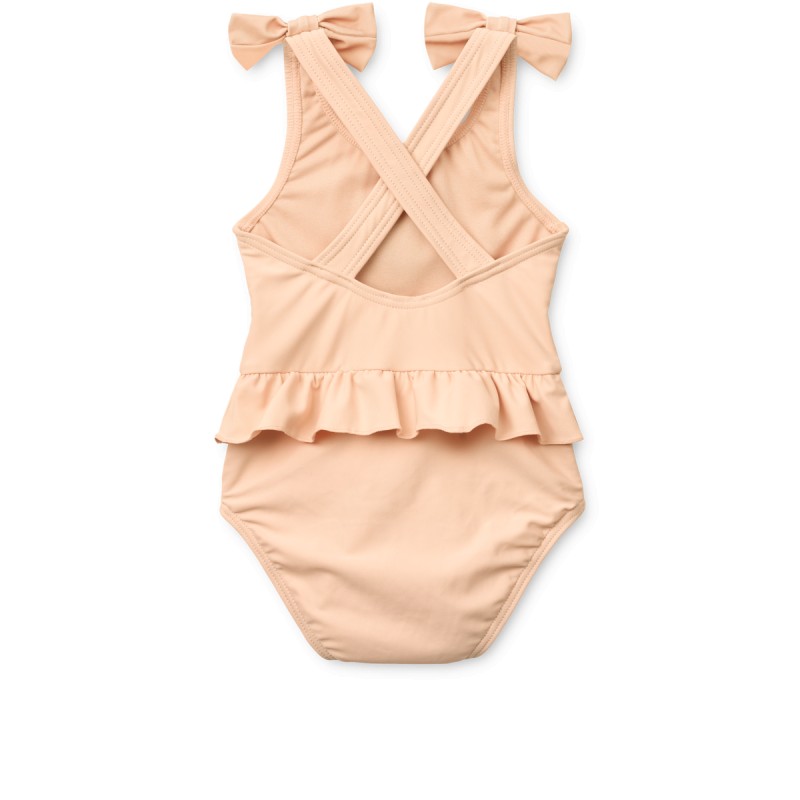 A staple for sunshine-filled days, the classic AMARA swimsuit is made for hours of sandcastle building and pool splashing. The gathered flounce waist, crossed back straps, and bow details add a touch of playfulness, while the fully lined, stretchy fabric ensures comfort throughout the day. With UV40+ protection and quick-drying recycled material, this swimsuit is a must-have for any summer adventure.