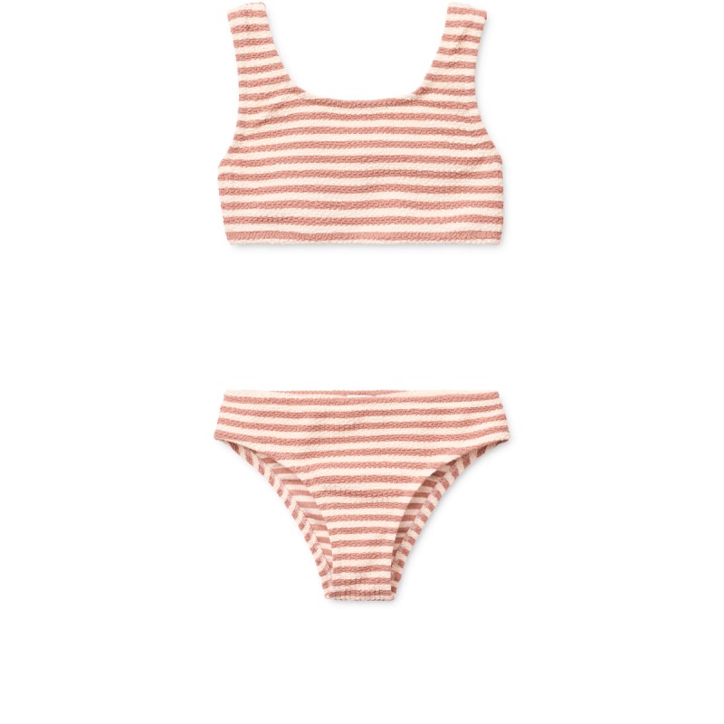 Let your little one jump into the pool or dive through the waves in the sporty new Bello bikini. The crinkle fabric ensures a snug fit great for swimming, while the brightly coloured silicone logo at the back offers a cool contrast to the muted colour of the bikini.