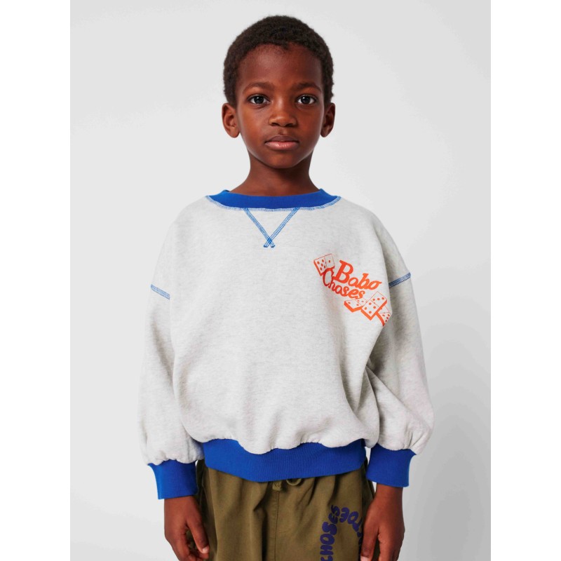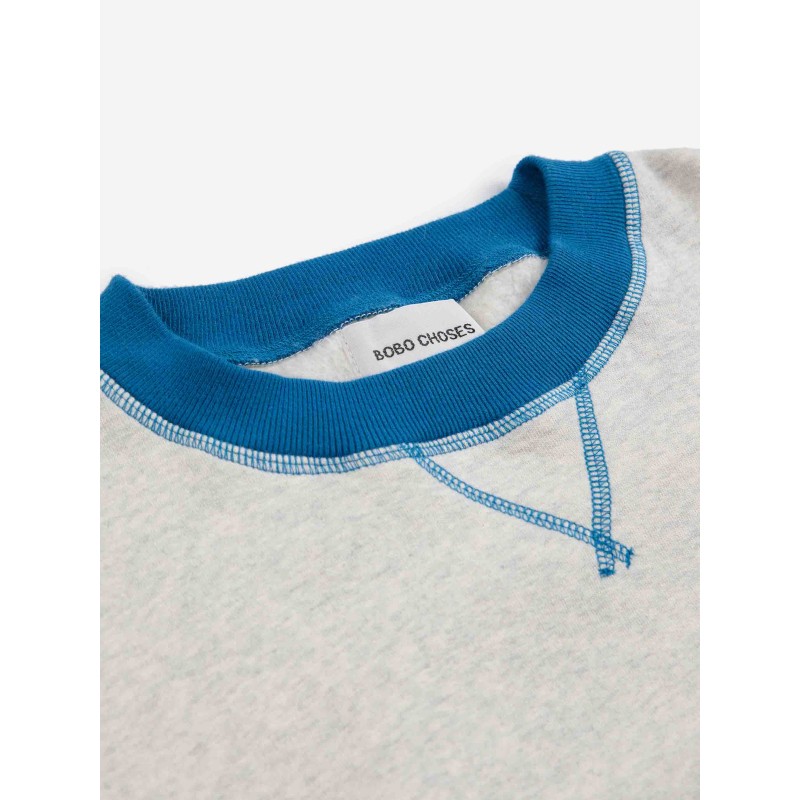 Light heather grey sweatshirt. Designed with long sleeves, ribbed cuffs, loose fit, ribbed bottom, round neck and inner brush fleece. Made in Portugal.